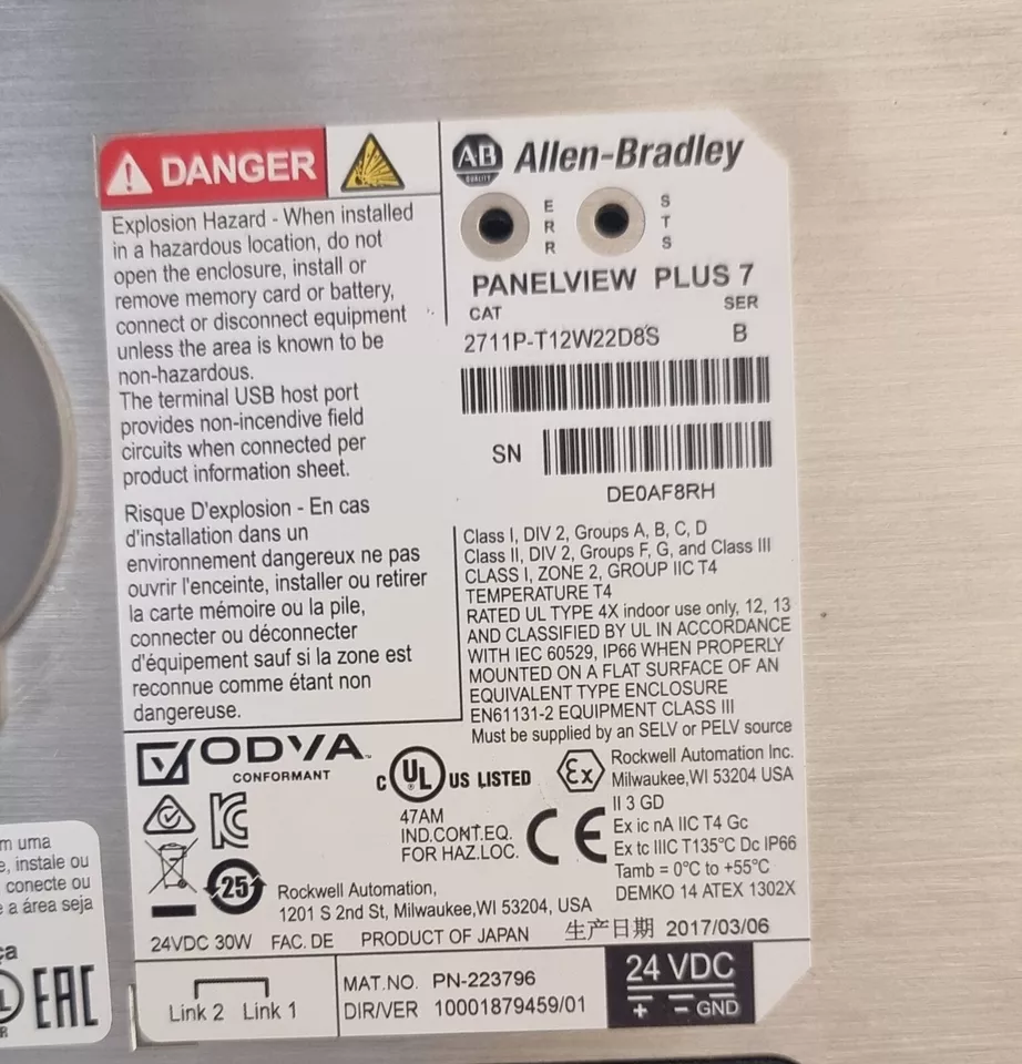 (2017) ALLEN BRADLEY 2711P-T12W22D8S PANELVIEW PLUS 7 HMI DISPLAY