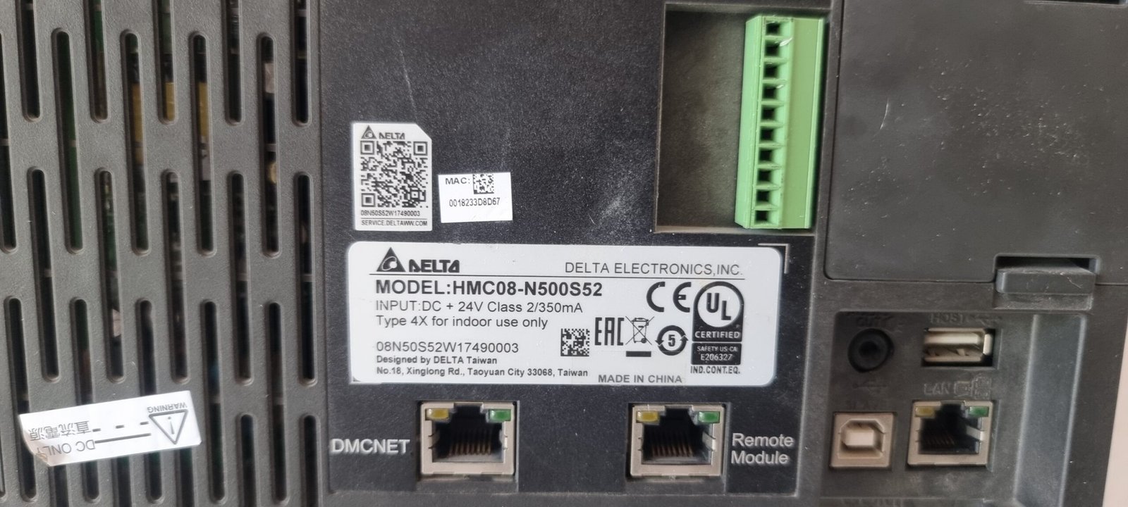 DELTA ELECTRONICS HMC08-N500S52 OPERATOR INTERFACE TERMINAL HMI DISPLAY